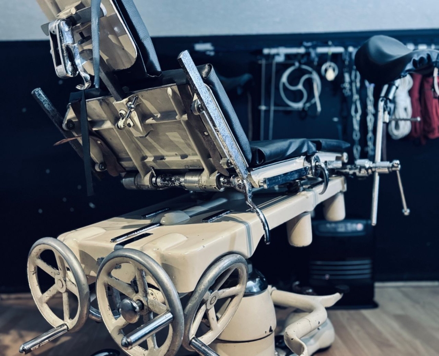 Elegant und atmosphärisch, mit gynäkologischem Stuhl/Tisch, Sling, Folterstuhl, medizinischer Liege, Segufix, Stahlsarg, Bondage-Sack, Fesseln, medizinischer Ausrüstung, alles von hoher Qualität, Isolationskammer, Küche für Servicesklaven, Dildos in allen Größen, zahlreiche Sissy-Outfits, High Heels usw.