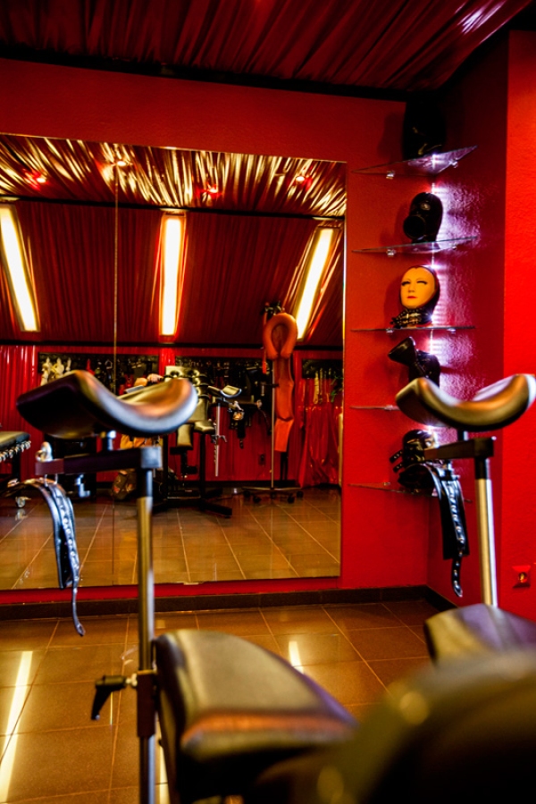 Ein Flair aus Leder, Eleganz, mystischer Stimmung zeichnet unsere klassischen Studioräume aus. Die große Vielfalt von speziellen Stühlen zur Fesselung und Disziplinierung, Käfige, Bondagerahmen sowie viele weitere, äußerst zweckdienliche SM Möbel und Utensilien geben den Bizarrladies und Herrinnen des Hauses den Raum um ihre Neigungen und Gelüste von Macht und Ohnmacht zu zelebrieren.